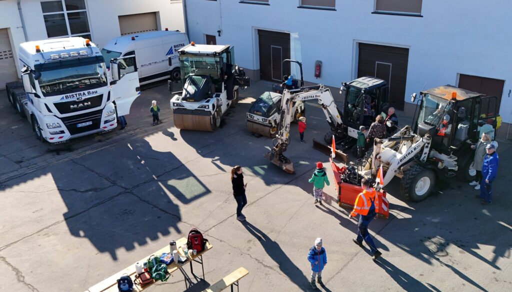 LKW, Walze, Minibagger, Radlader und Asphaltfertiger wurden ausgiebig getestet – Probesitzen und Hupen inklusive. Auch ein Blick in unsere Werkstatt durfte natürlich nicht fehlen. 🚧